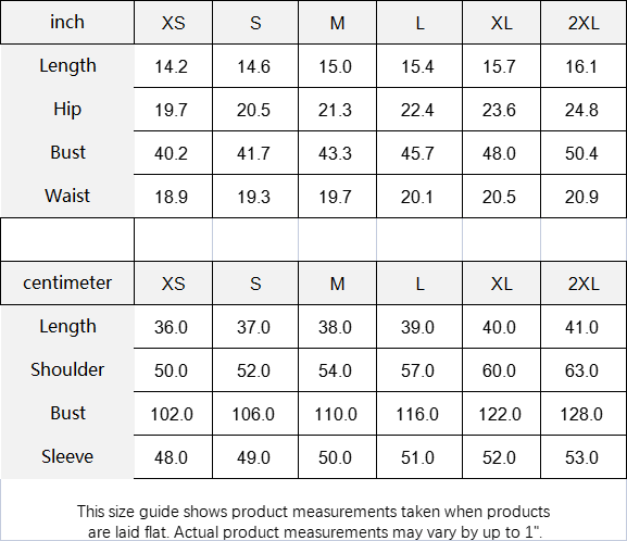 This size guide shows product measurements taken when products are laid flat. Actual product measurements may vary by up to 3cm.